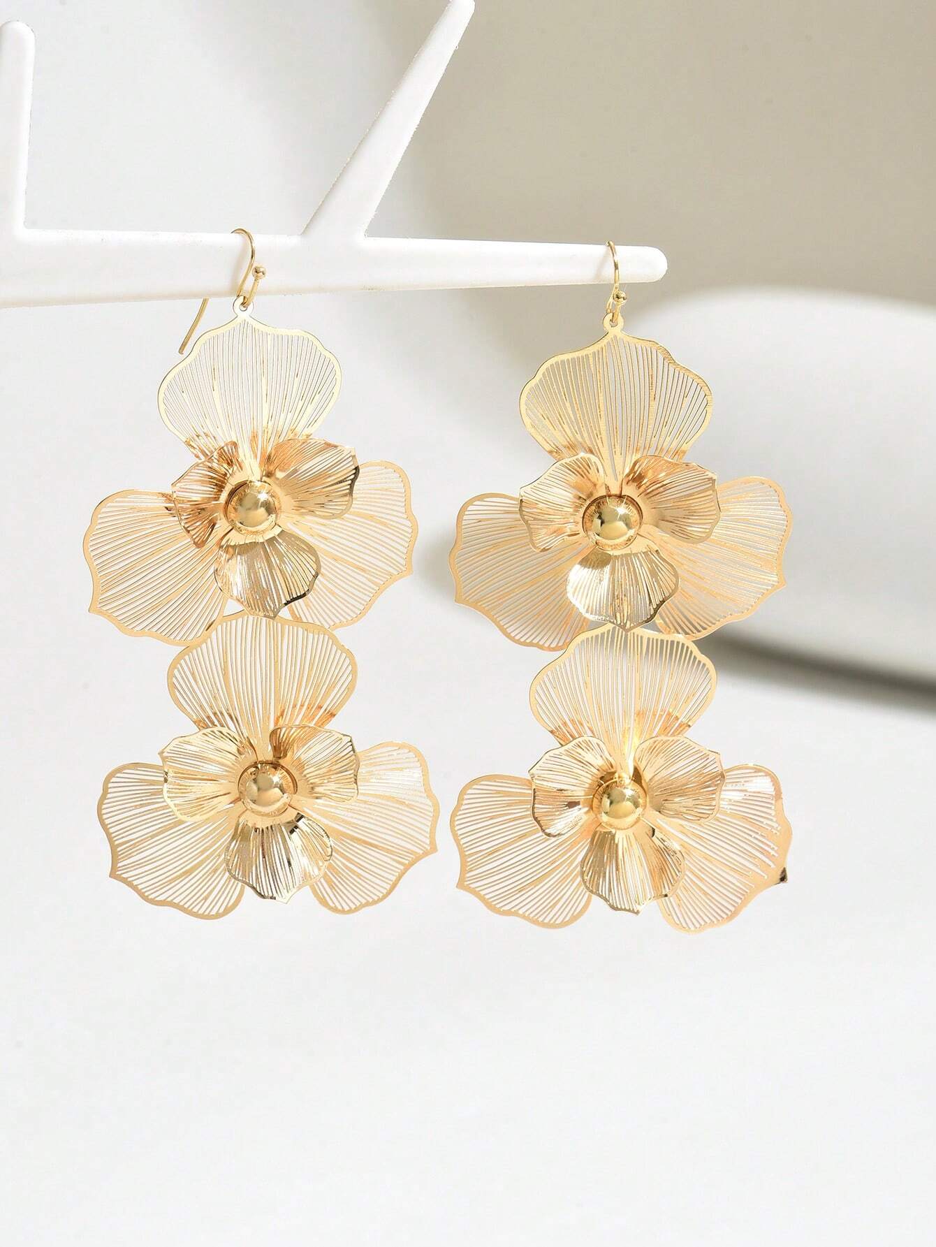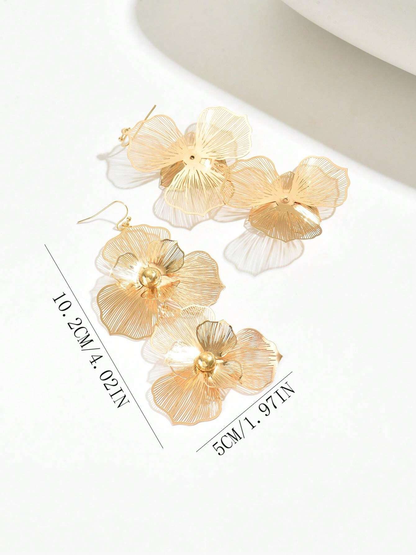 1pair Fashionable Double-Layer Floral Drop Earrings With Exaggerated Design, Long Floral Earrings For Women