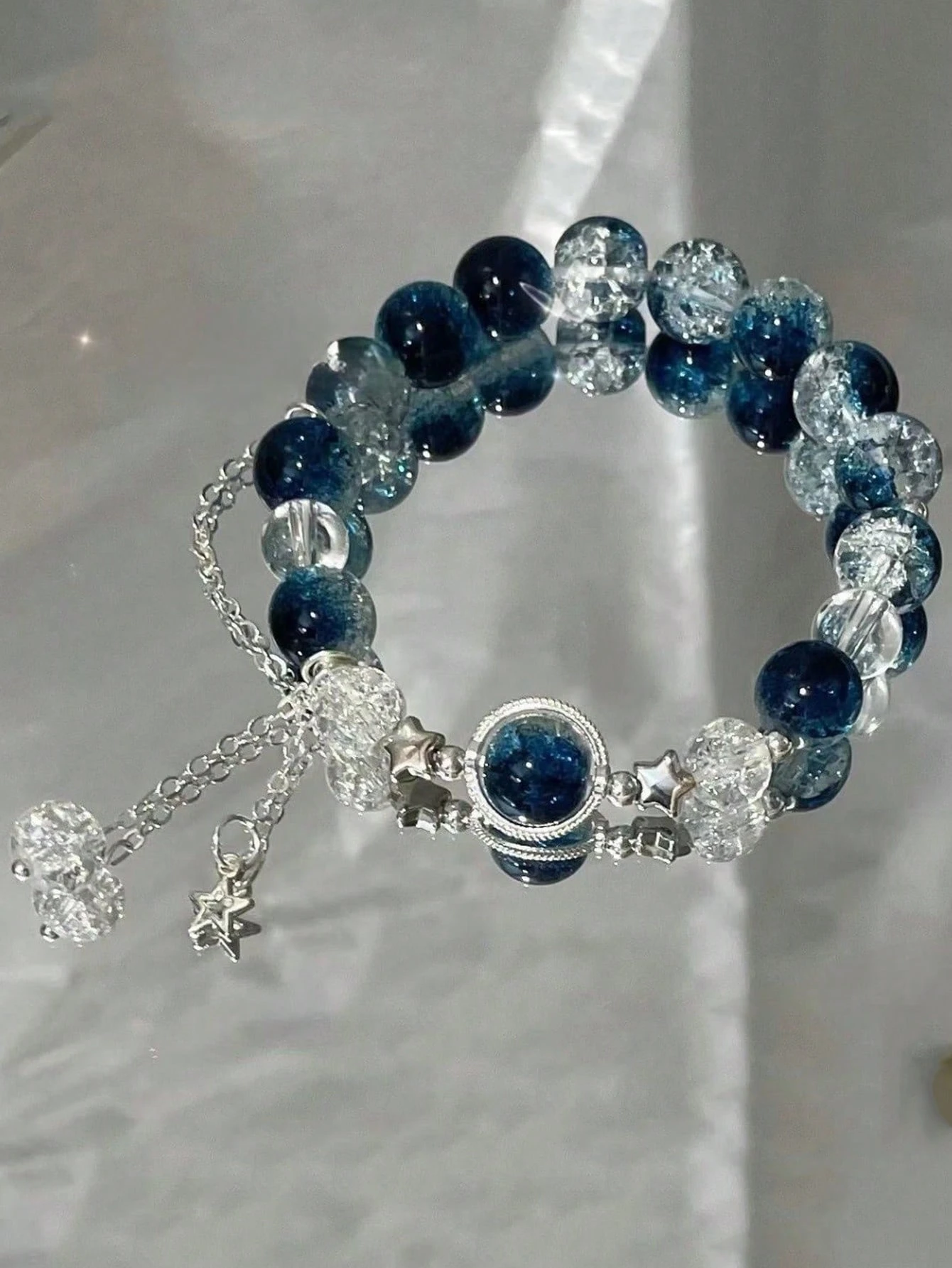 • Star accents with adjustable string and tail beads for a custom fit