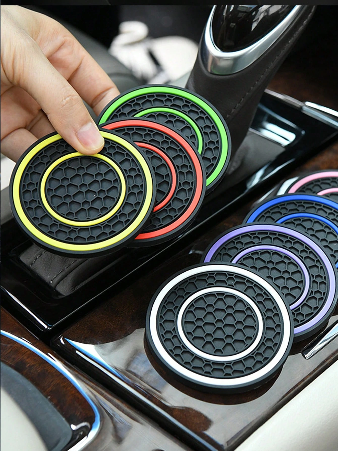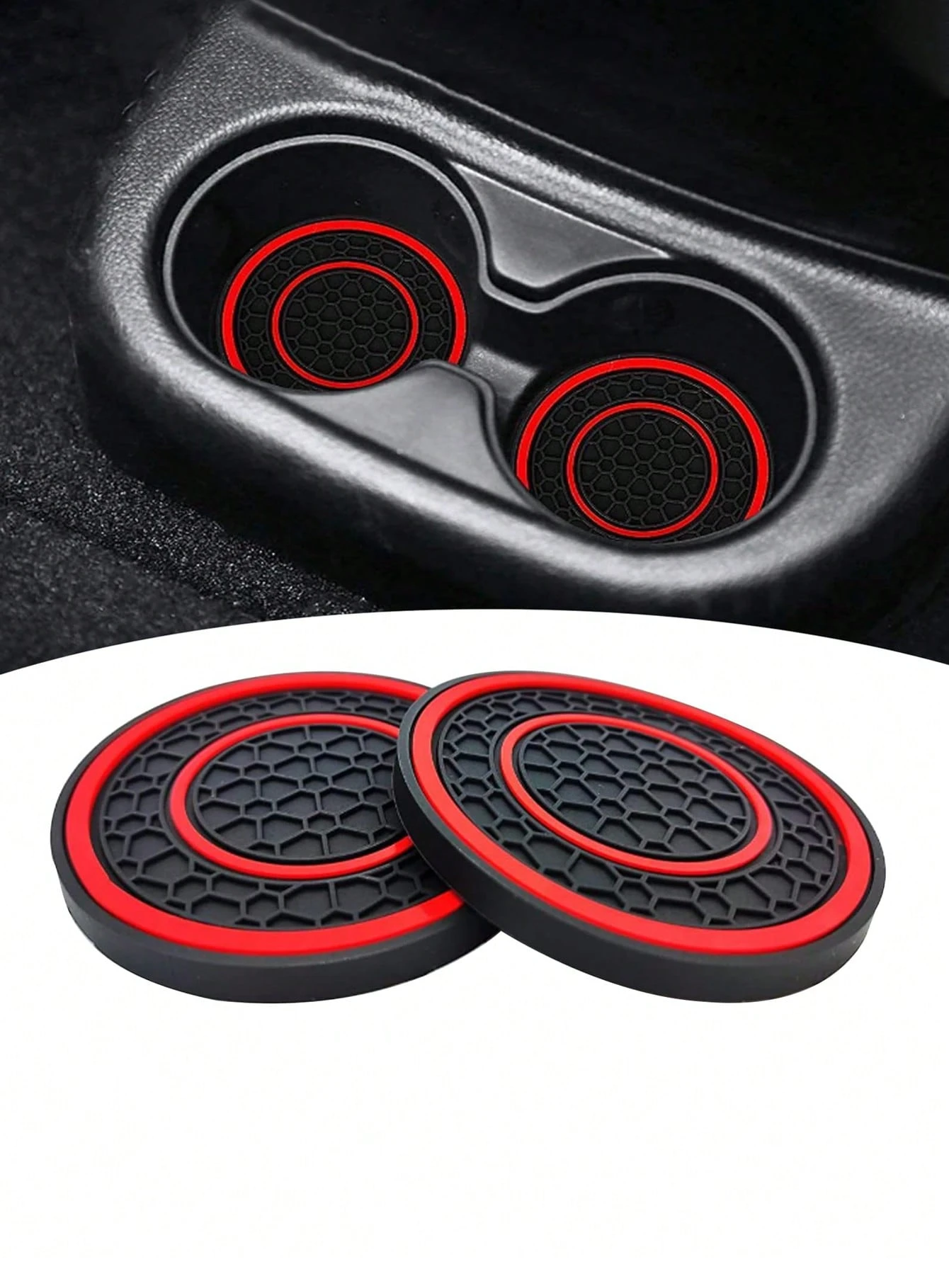2pcs Universal Car Cup Holder Mats – 2.75 Inch PVC Silicone Center Console Double Circle Honeycomb Design