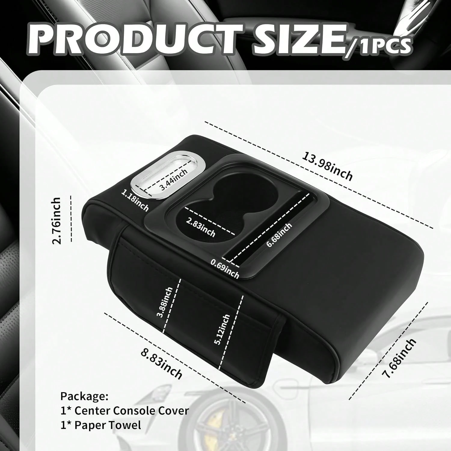 4 In 1 Center Console Cover,Multifunctional Car Armrest Storage Box With Cup Holder& Phone Holder& Car Tissue box