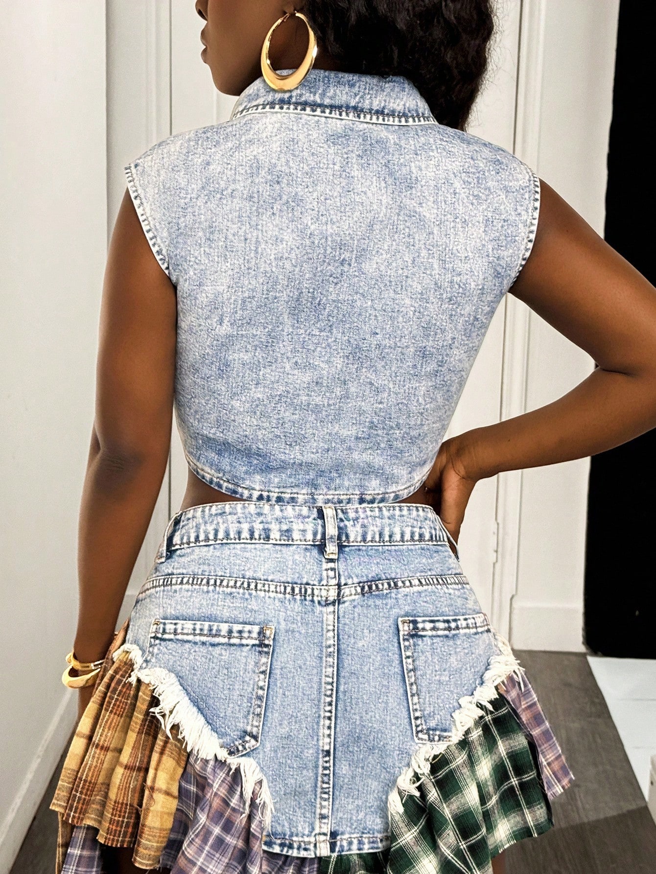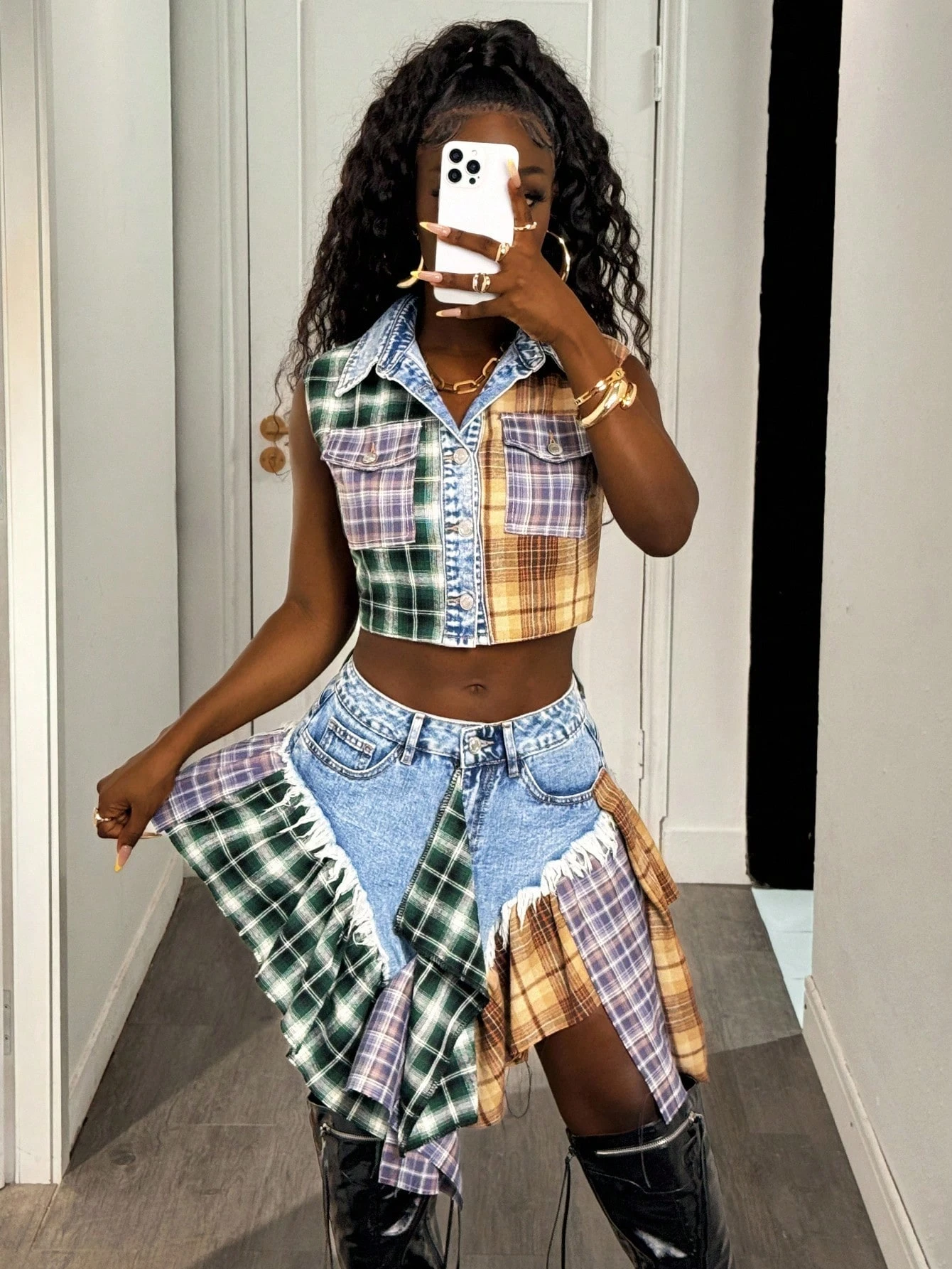 Add a stylish layer to your wardrobe with this women’s plaid single-breasted denim vest. Featuring practical cargo pockets and a casual yet fashionable design, it’s perfect for layering over tees or blouses for everyday streetwear looks. Comfortable, versatile, and trendy, this vest brings both function and style to your casual outfits.