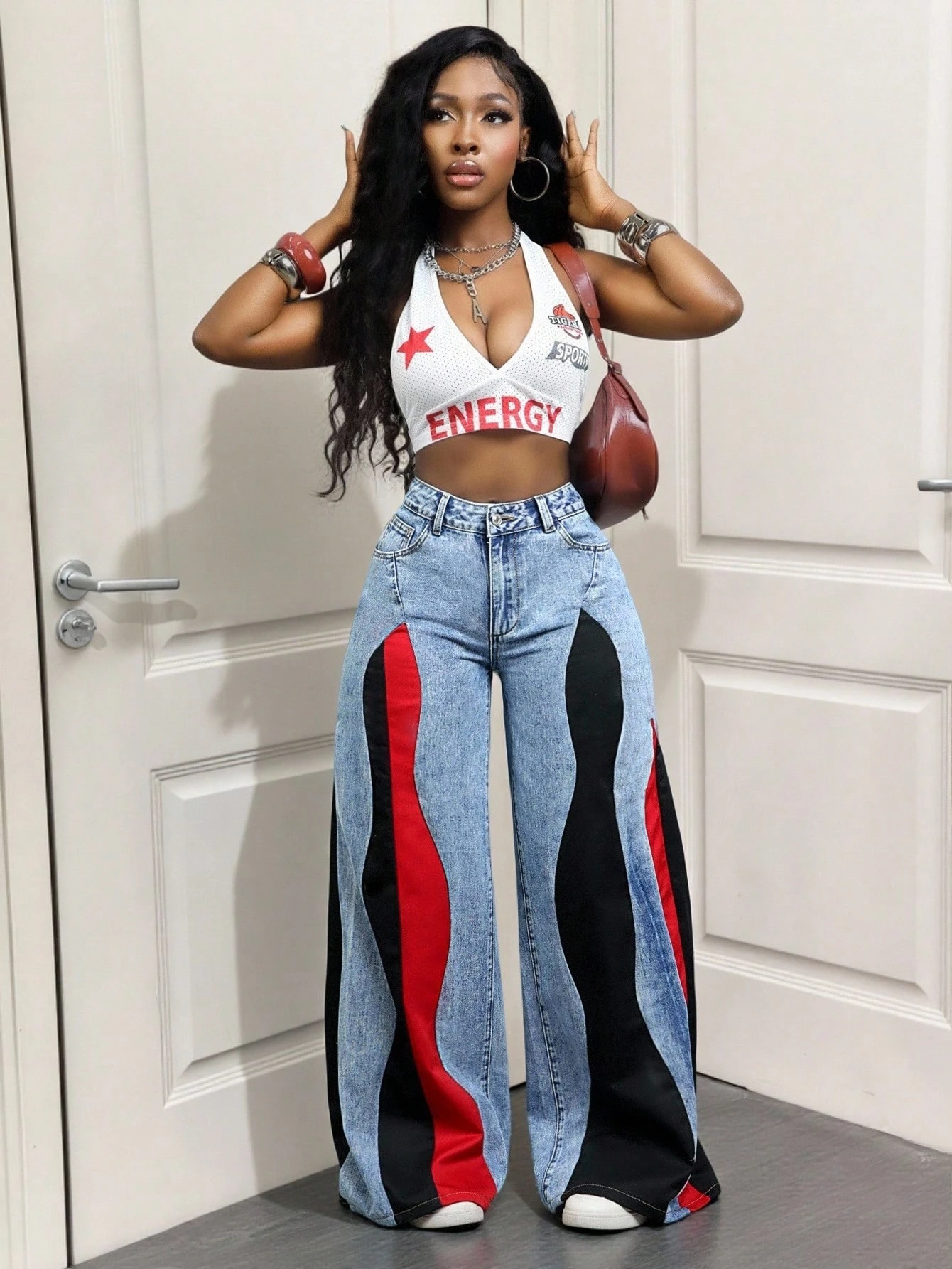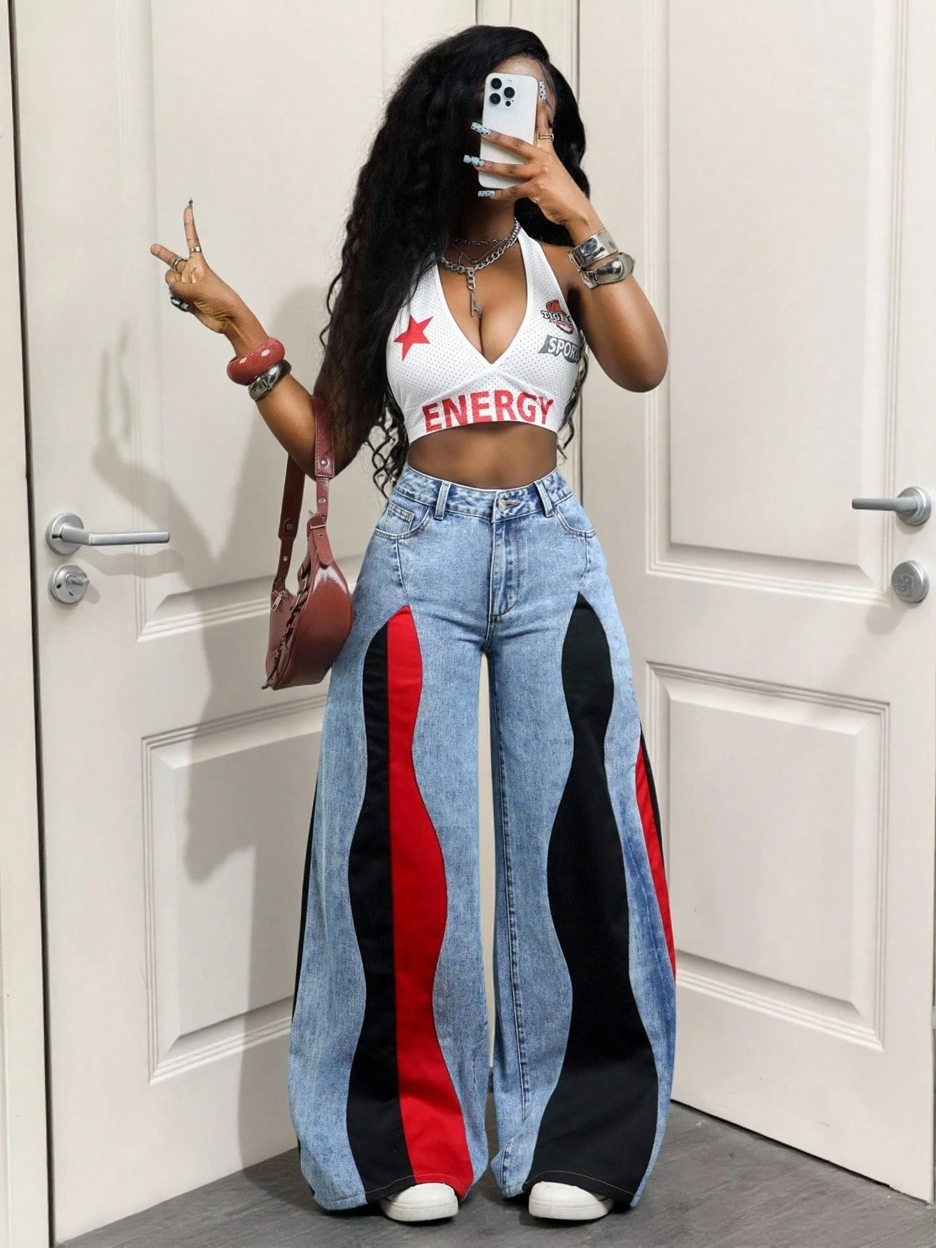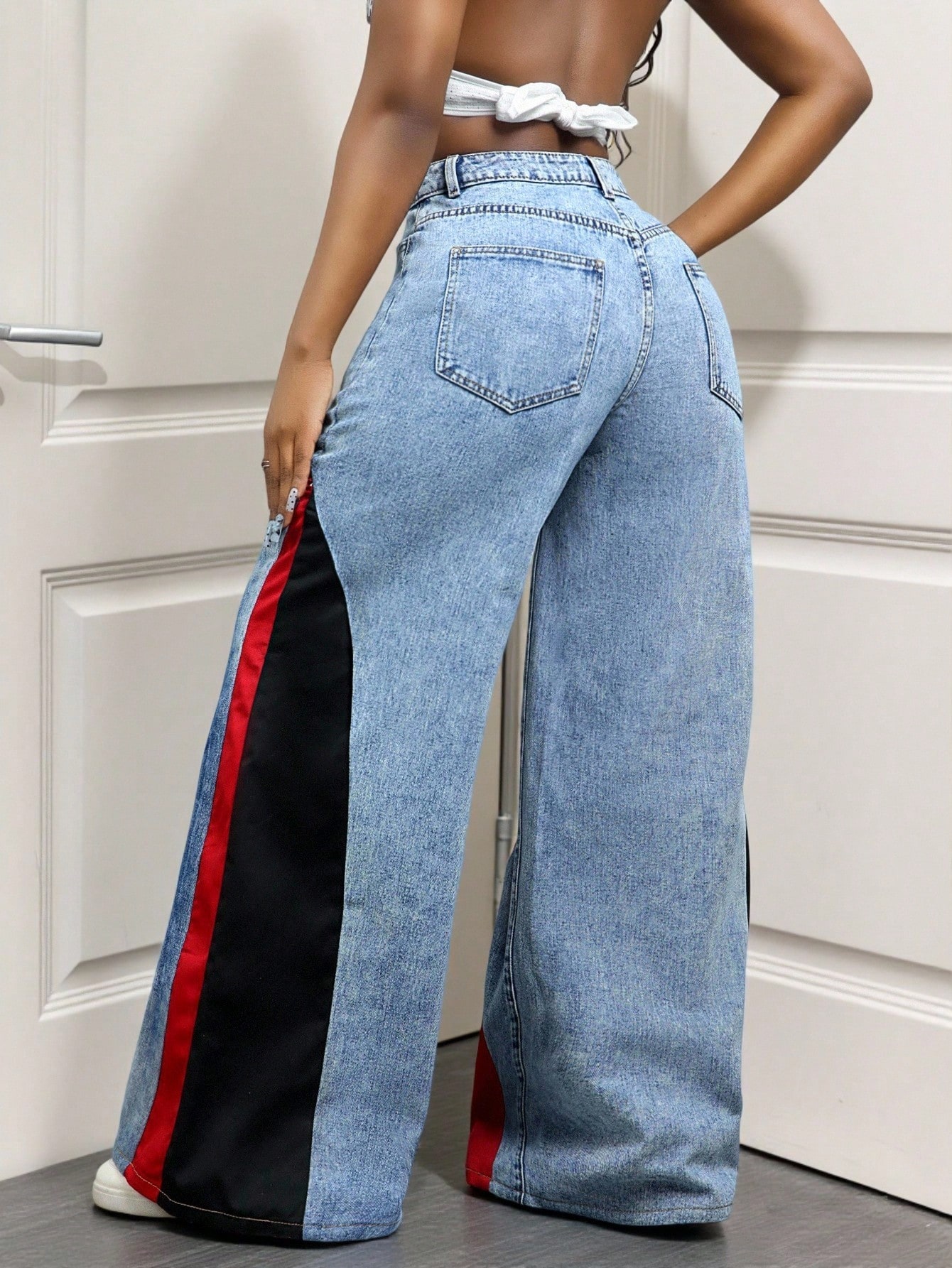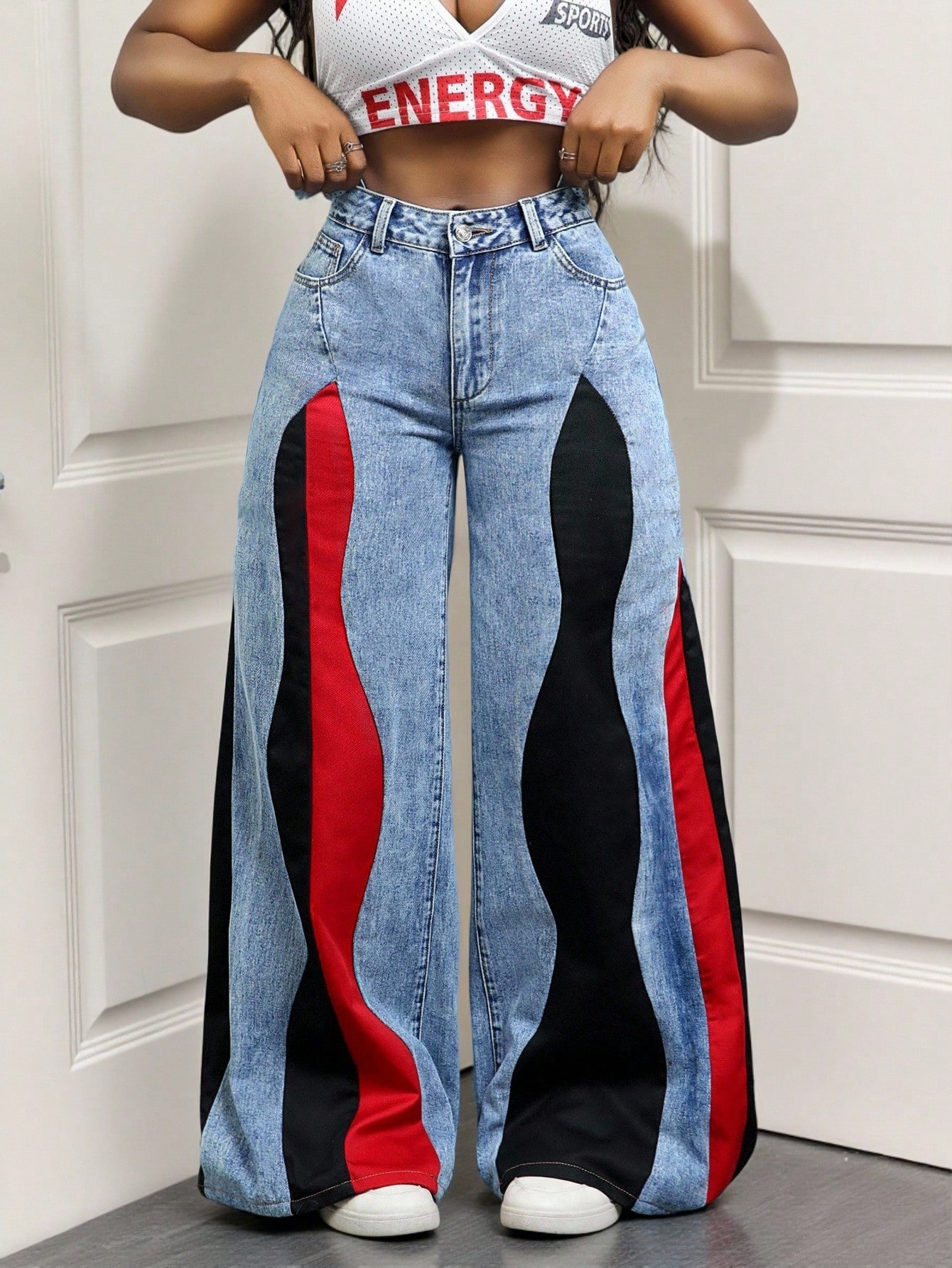 SHEIN BamGlam Women’s Fashion Color Block Wide Leg Jeans